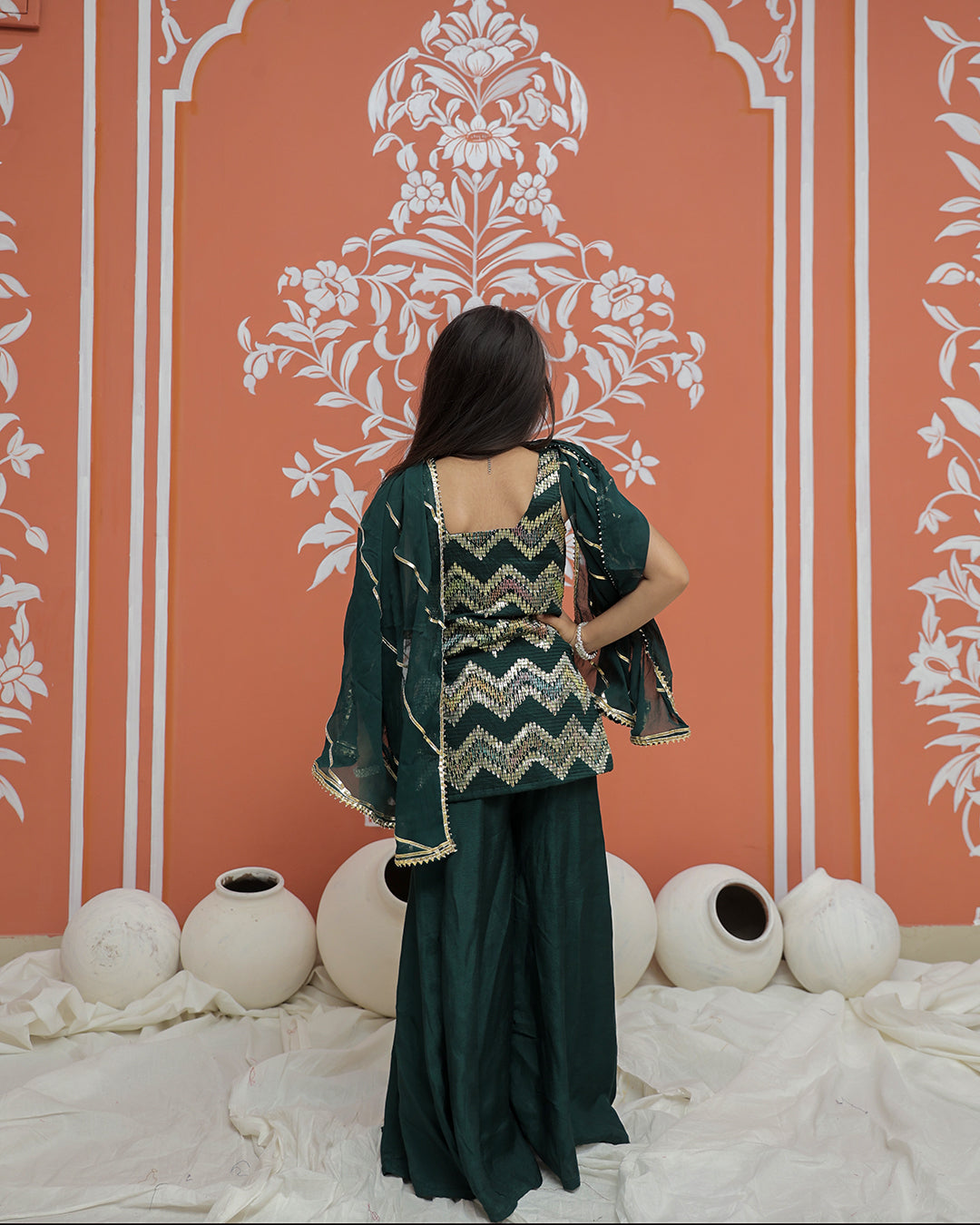 Green Multicolor Gota Design Kurta Palazzo Dupatta Set