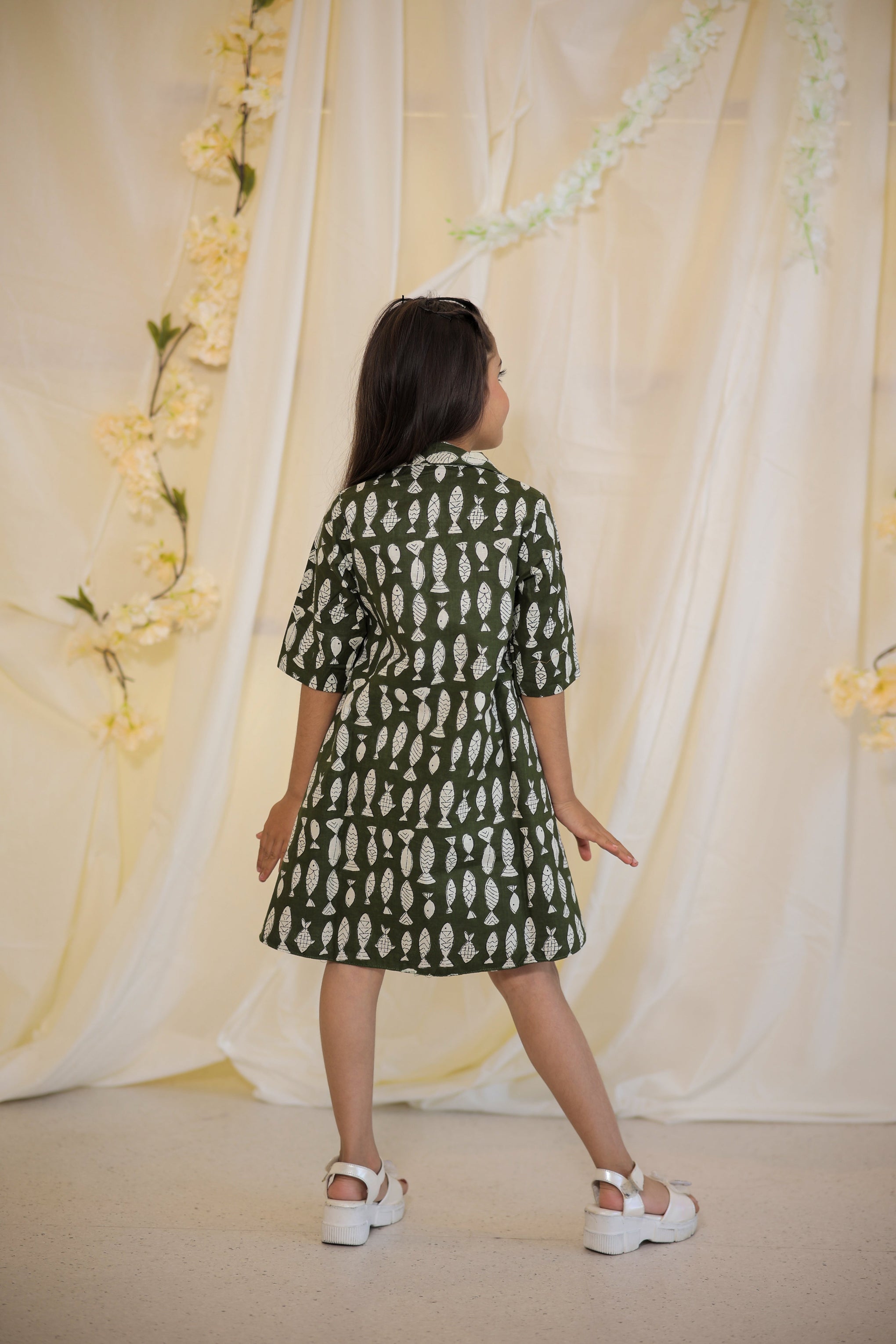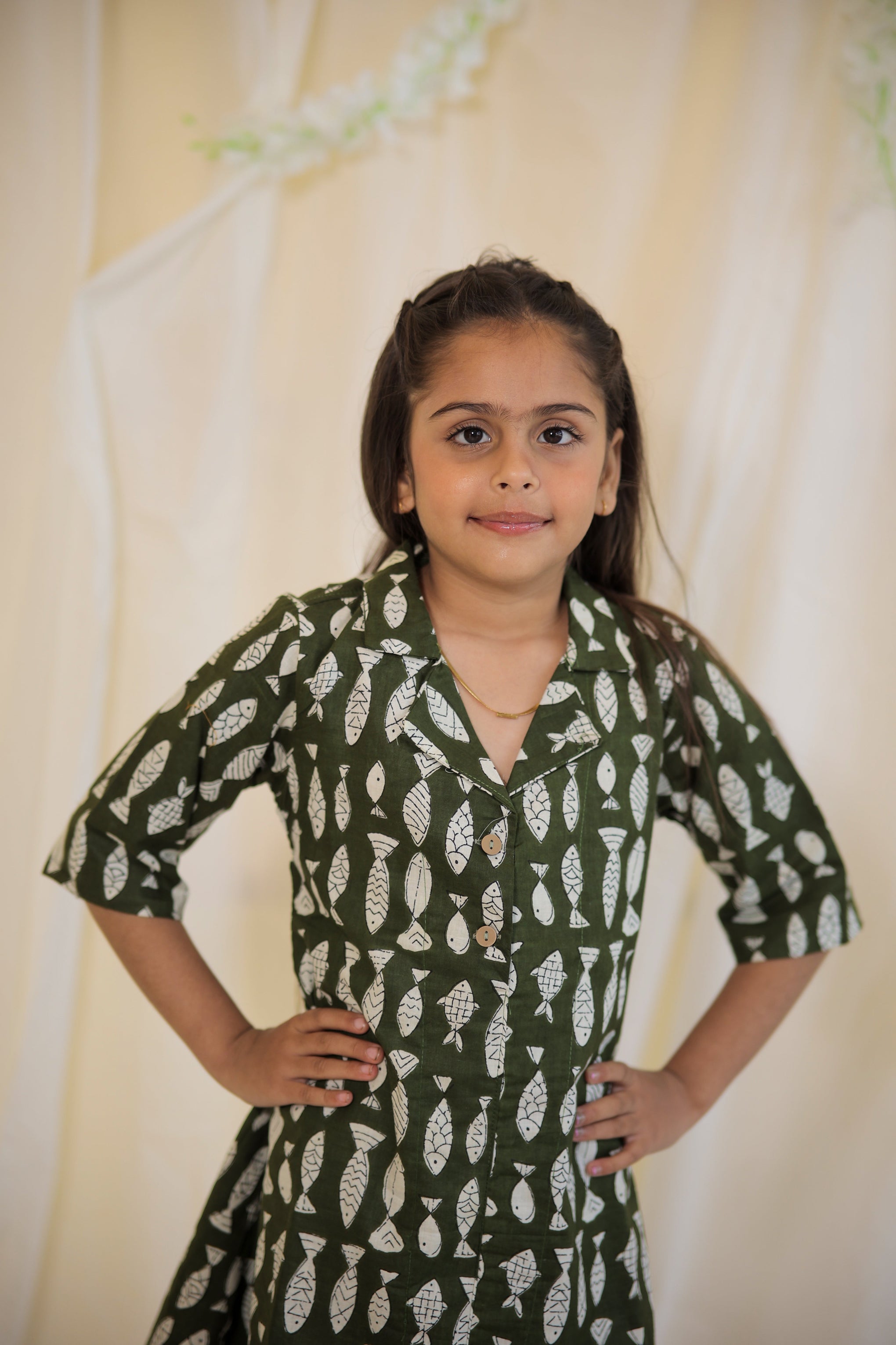 Make a splash with our Fishy Print Cotton dress! Perfect for your little girls, this playful green dress features a fun fish print that will have them swimming with joy. Whether you're heading to the beach or just out and about, this dress is the perfect addition to their wardrobe.