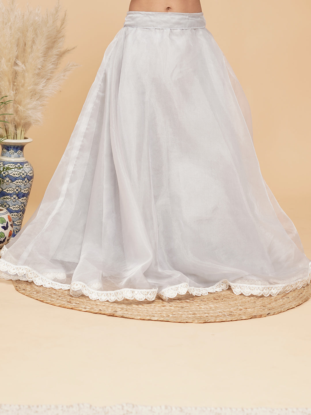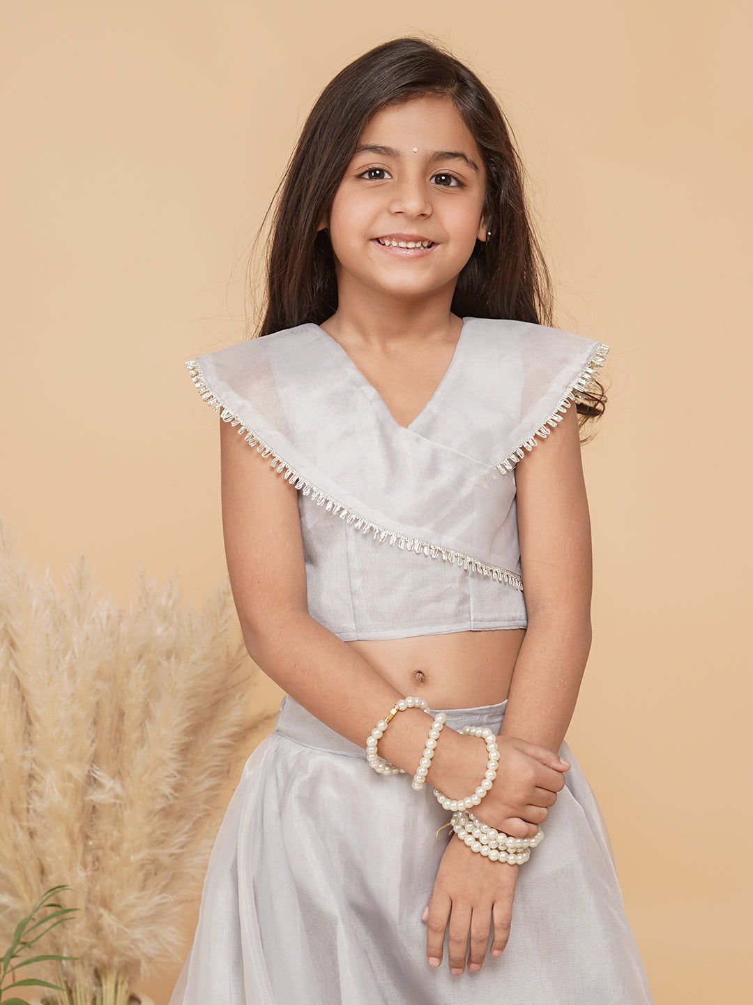 Introducing our Grey Organza Designer Crop top Skirt set! Made with delicate organza which elevate your little one's wardrobe with this must-have ensemble!