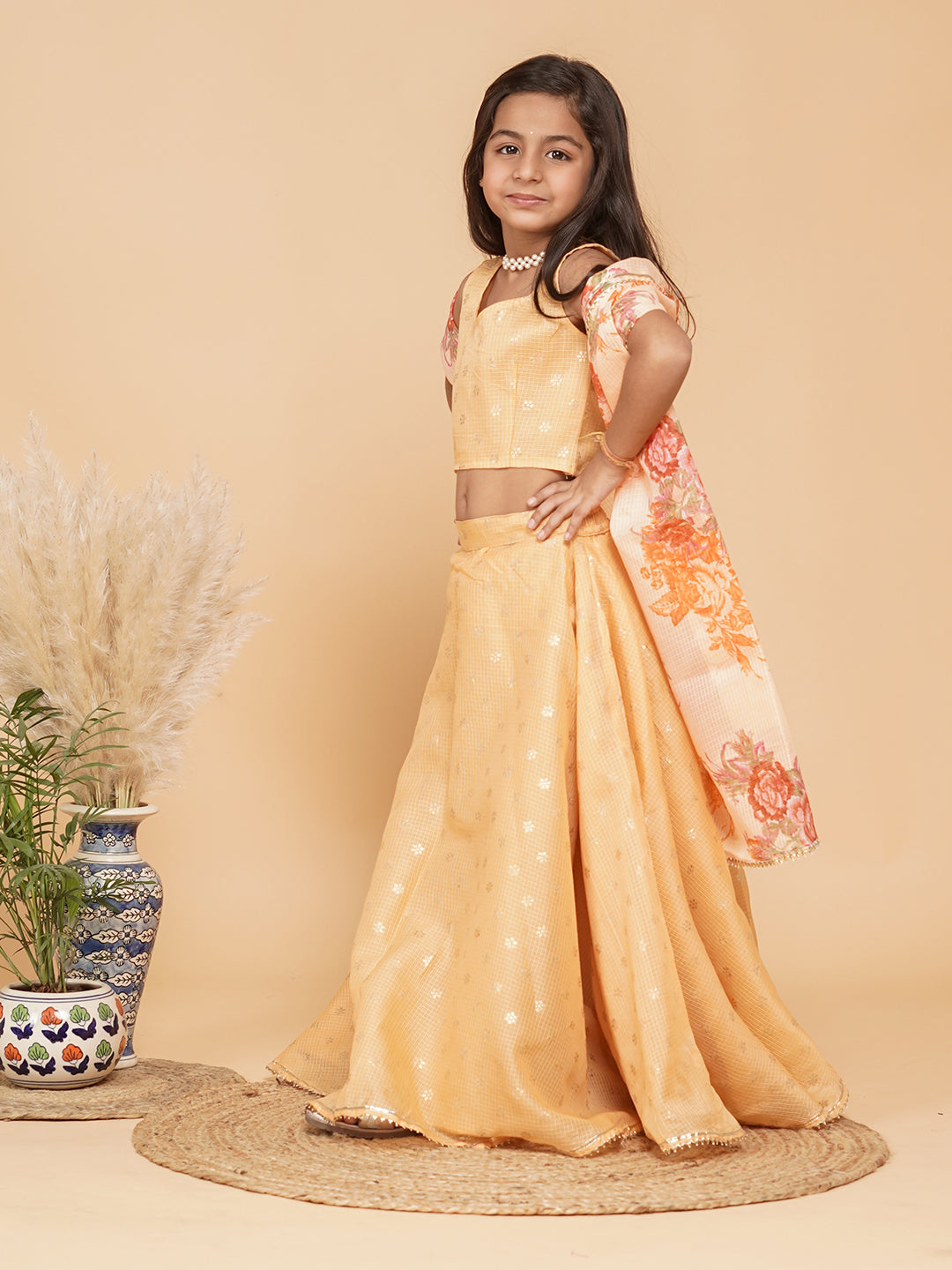 Perfect Lehenga for traditional events and adding a touch of elegance to any occasion. Your little girl will love this pastel outfit that will make her look like a princess!