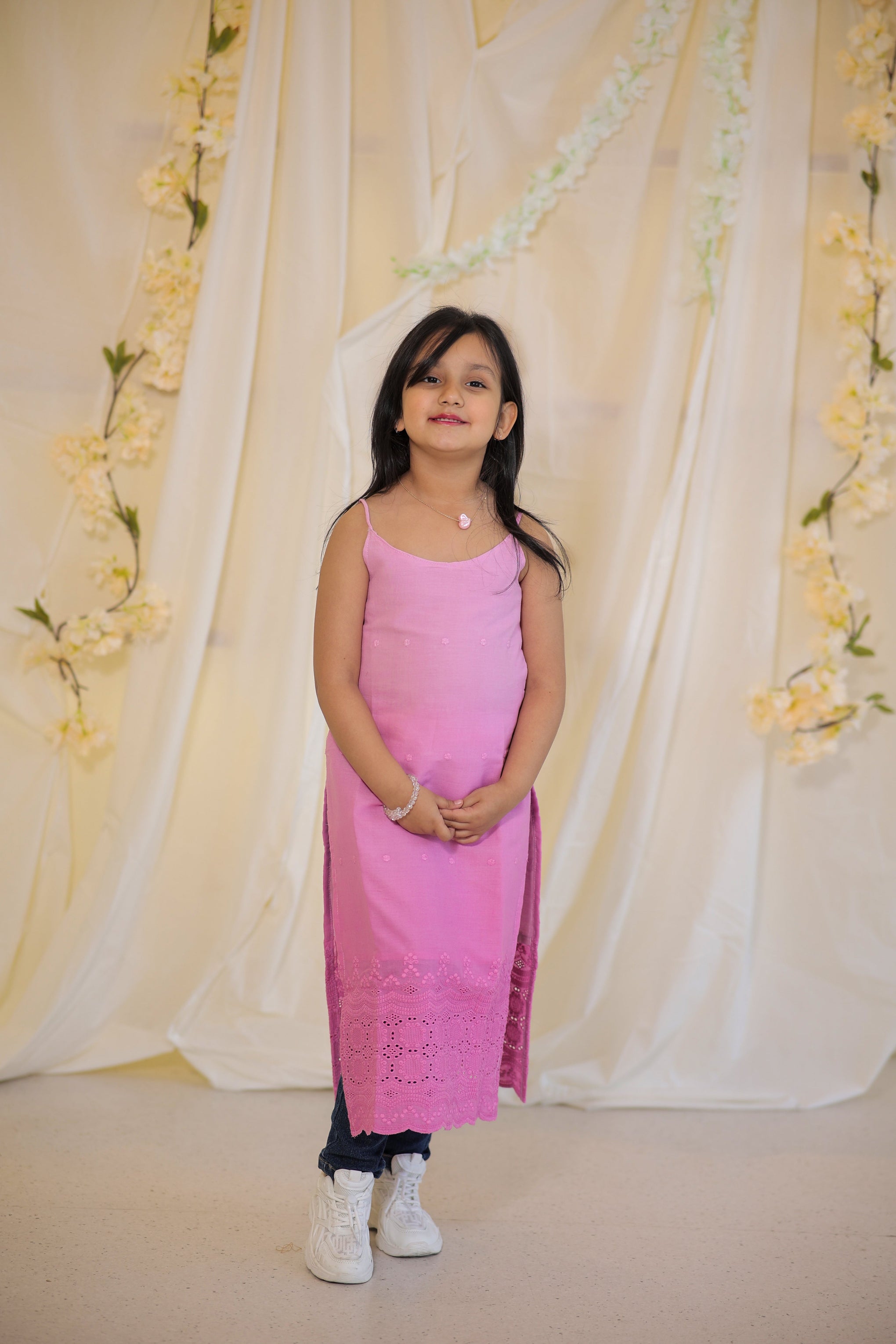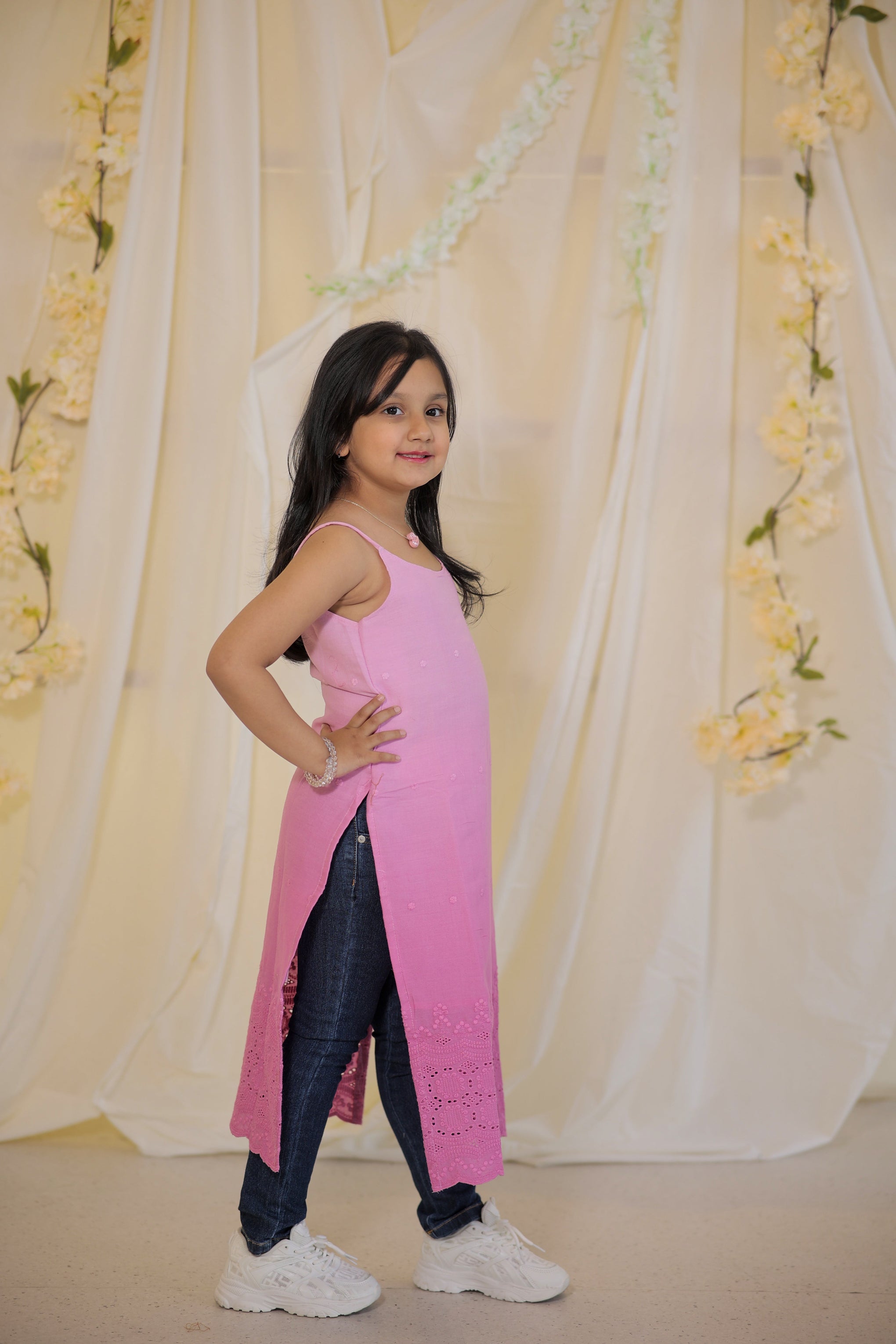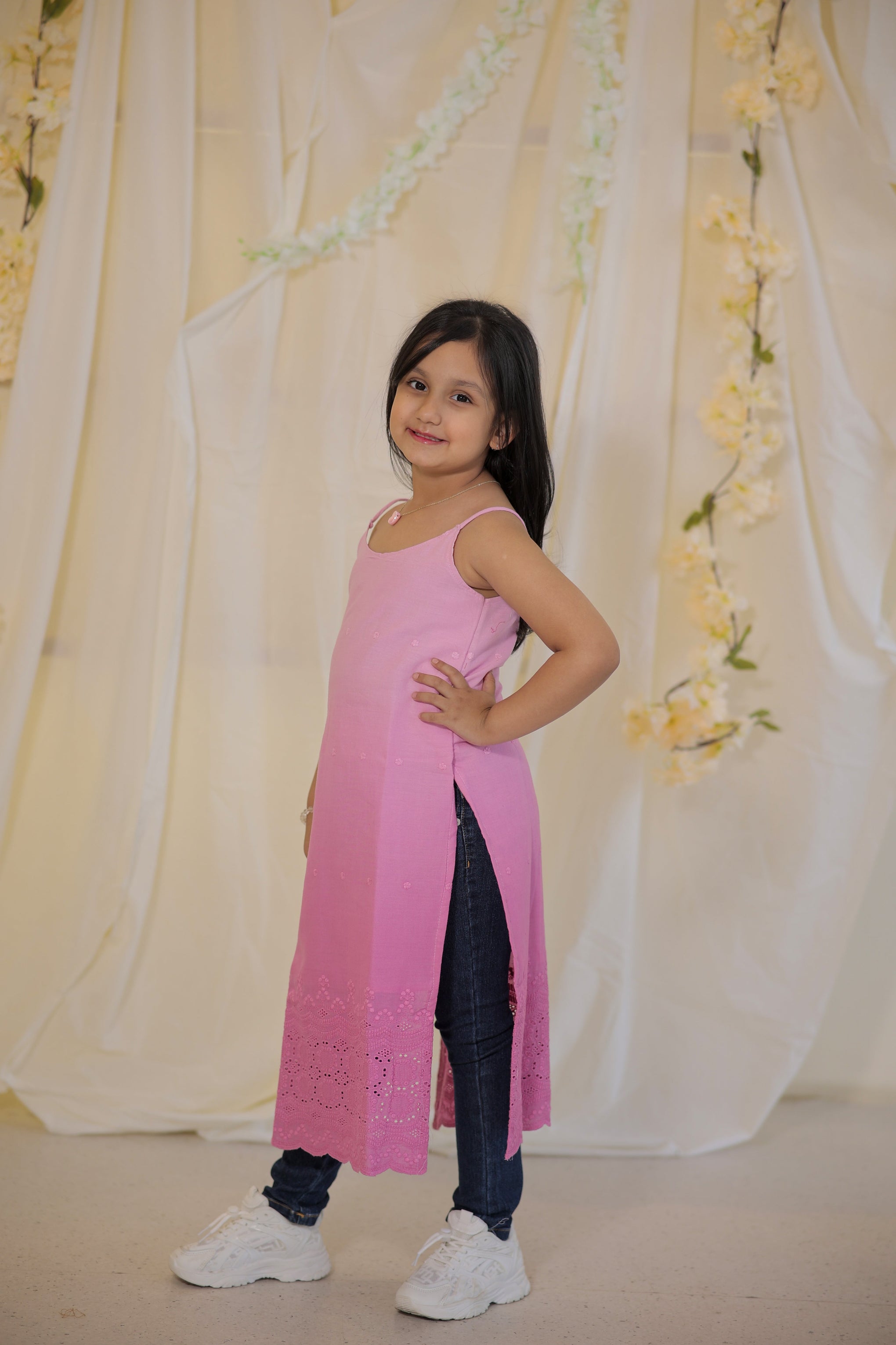 Add a touch of ethnic flair to your little girl's wardrobe with our Hakoba Peach Kurta. Made from pure cotton hakoba fabric, this hand-dyed kurta is not only stylish but also comfortable to wear during the summer. Elevate her summer wear with this unique and playful piece!